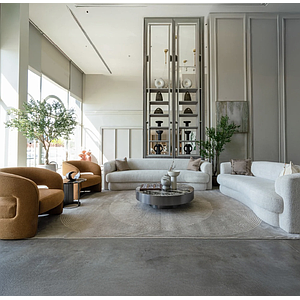 طقم كرسي استرخاء مع بوف وطاولة جانبية لوب - رمادي وازرق فاتح